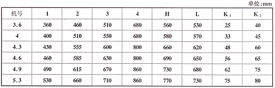 注:K1为960转电机时风机重量(kg),K2为1450转电机时风机重量(kg)。